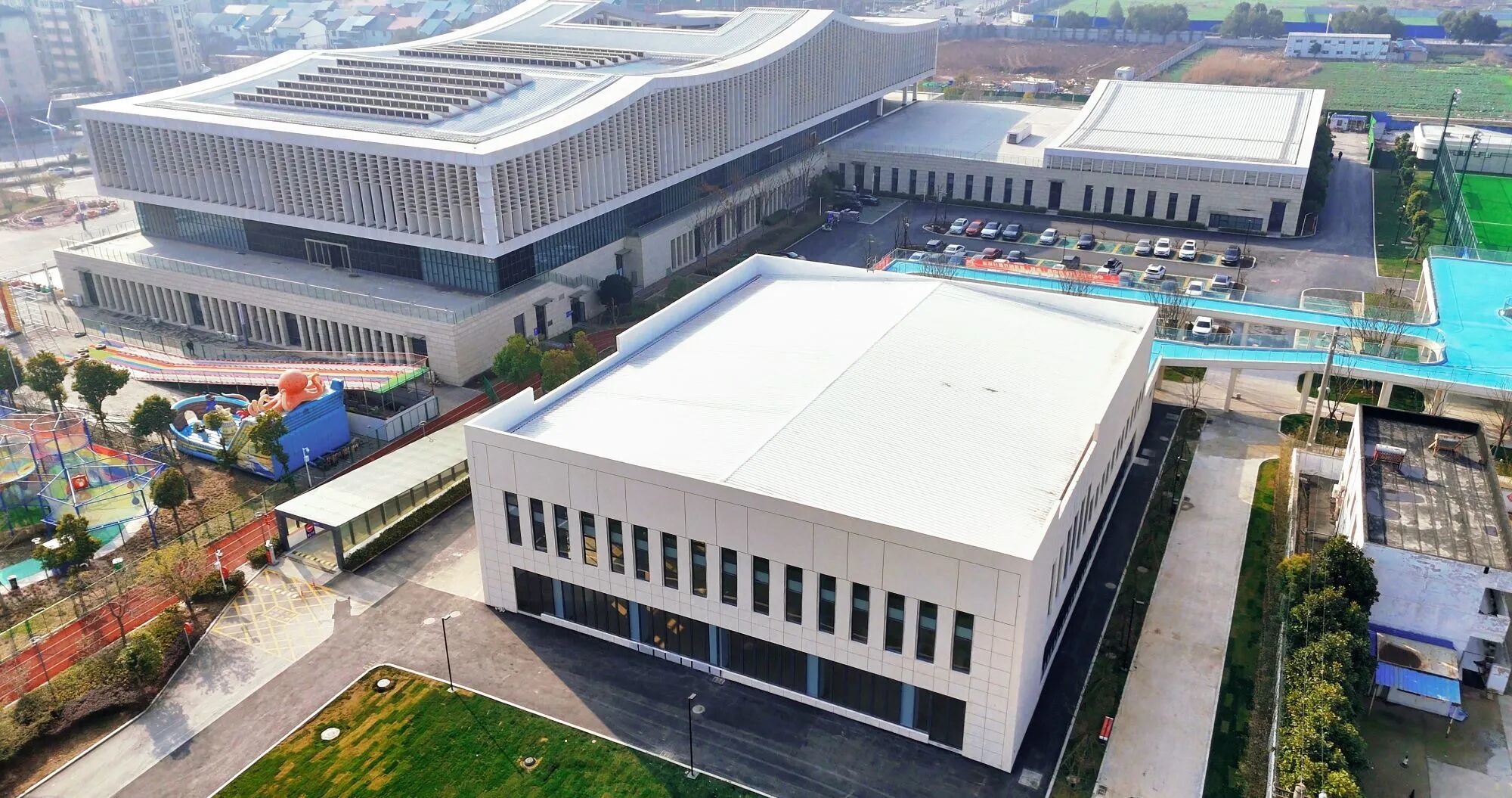 此前,二期足球场已率先投用,按专业标准打造4片五人制、1片七人制场地,今年1月开放以来,先后举办青少年冬季足球训练营、多场足球赛等活动,深受市民喜爱。