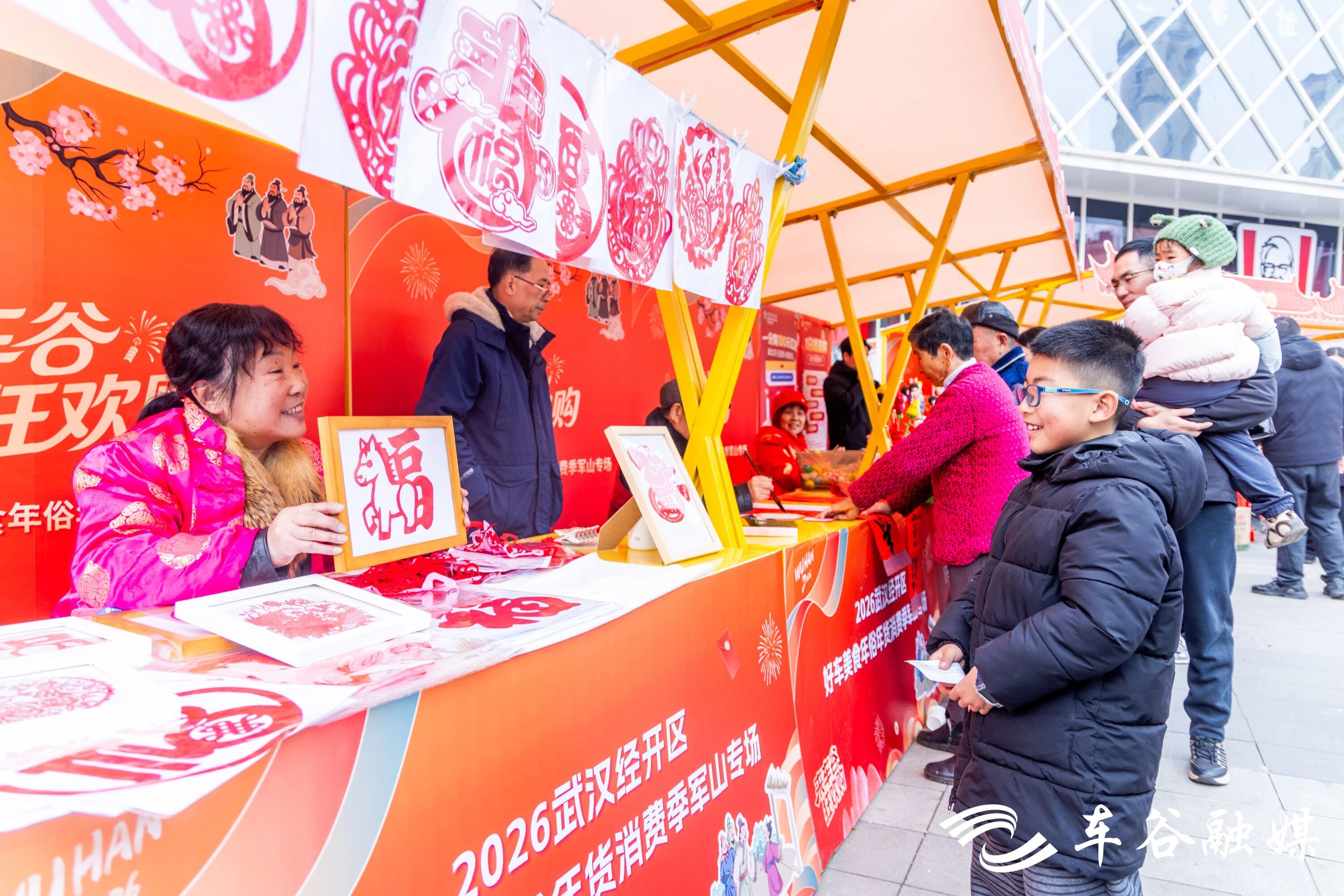 2月7日,“来车谷,狂欢购”2026武汉经开区好车美食年俗年货消费季军山专场在军山新城车都春台里商圈广场启动。“车谷造”好车与传统年货产品在这里汇聚,市民一站式体验“看车、赏非遗、囤年货、玩亲子、品美食”。