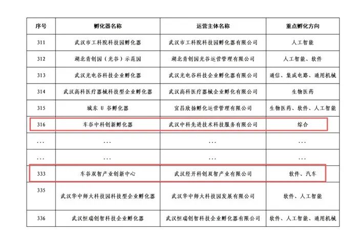 近日,工业和信息化部公示了第一批科技型企业孵化器名单,湖北省共27家载体入选。武汉经开区两家科创载体——车谷中科创新孵化器、车谷双智产业创新中心双双上榜,获评工信部首批标准级孵化器。这标志着武汉经开区孵化载体再添“国家级”标杆,区域创新承载力与核心竞争力进一步凸显。