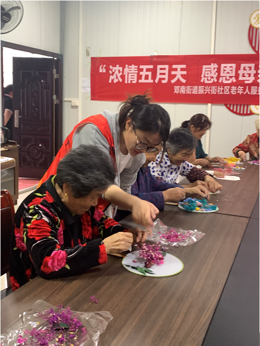 5月11日上午,邓南街振兴街社区老年人服务中心联合振兴街社区新时代文明实践站开展“浓情五月天
