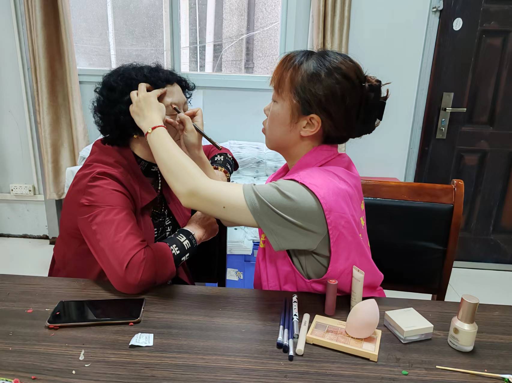 为了让每位老年人在母亲节这个特殊的日子里感受到自己的美丽和魅力,更让他们感受到来自社区的关爱和祝福,社区志愿者为每位妈妈量身打造妆容,揭开岁月的面纱,重返青春。经过志愿者巧手打造,每位老年人都焕发出新的光彩。画好妆容后,大家手持团扇,拍照记录这美好而难忘的时刻。