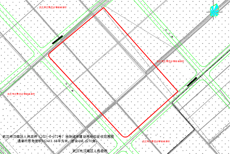 经土地现状调查和社会稳定风险评估,拟征收汉南区纱帽街通津村的集体土地31.2414公顷。其中:农用地31.2414公顷(含耕地29.5467公顷)、建设用地/公顷、未利用地/公顷,并于2021年5月13日发布了《征收土地启动公告》(汉土告字[2021]043号)。