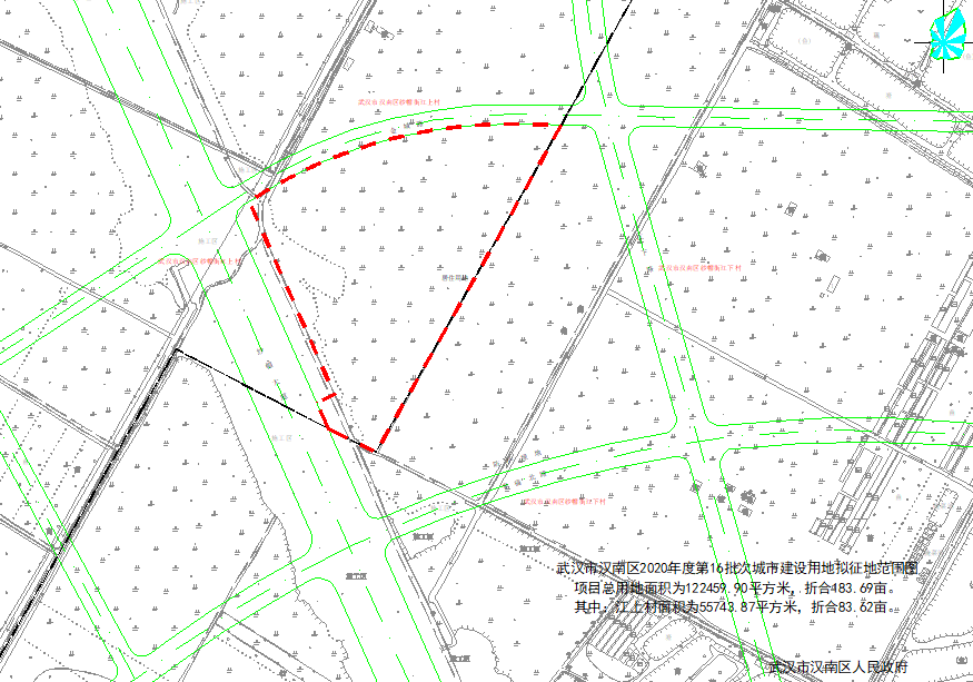 经经土地现状调查和社会稳定风险评估,拟征收汉南区纱帽街江上村的集体土地5.5744公顷。其中:农用地5.5744公顷(含耕地5.4605公顷)、建设用地/公顷、未利用地/公顷,并于2020年4月20日发布了《征收土地启动公告》(汉土告字[2020]019号)。
