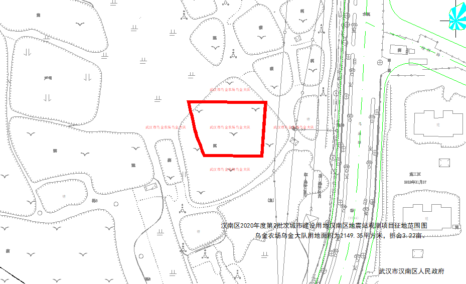 经土地现状调查和社会稳定风险评估,拟使用武汉市乌金农场乌金大队的国有土地0.2149公顷。其中:农用地0.2149公顷(不含耕地)、建设用地/公顷、未利用地/公顷,并于2020年4月20日发布了《使用国有土地启动公告》(汉土告字[2020]002号)。