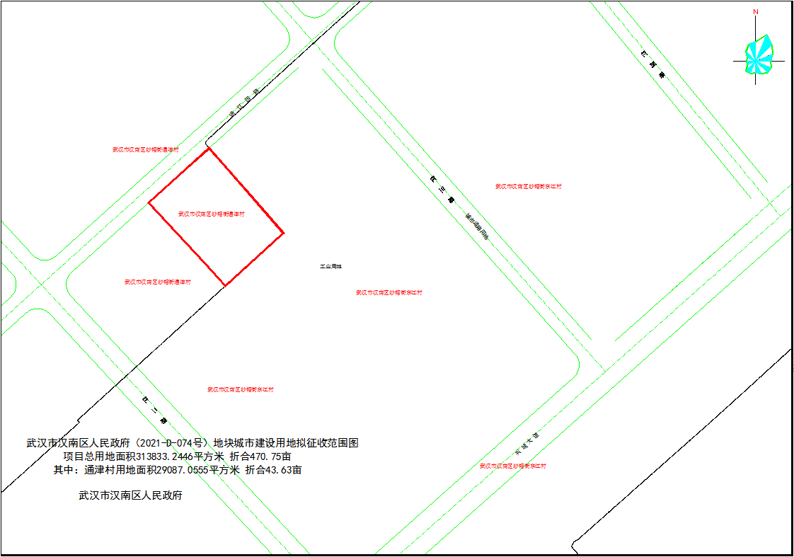 经土地现状调查和社会稳定风险评估,拟征收汉南区纱帽街通津村的集体土地2.9087公顷。其中:其中农用地2.9087公顷(耕地2.8748公顷)。并于2021年5月13日发布了《土地征收启动公告》(汉土告字[2021]034号)。