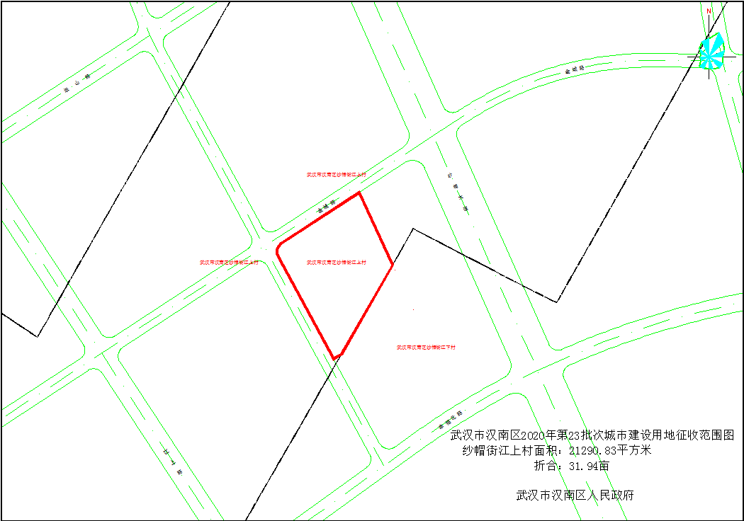 一、征收土地范围:纱帽街江上村(详见附图)。