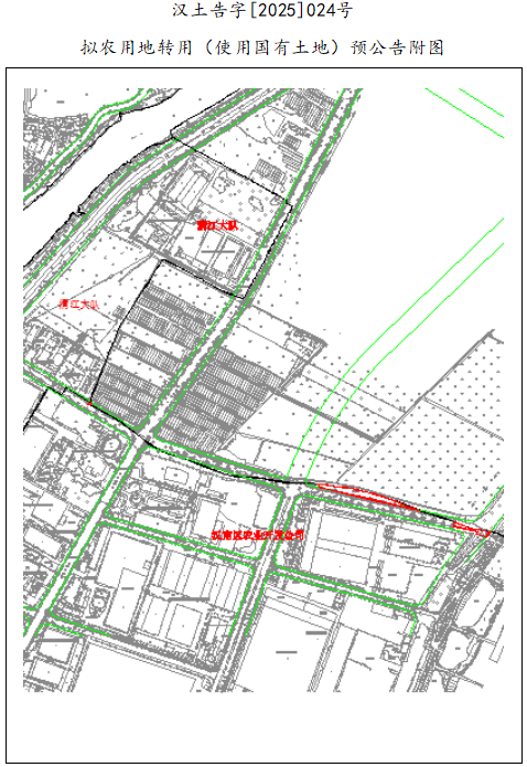因实施武汉市汉南区2025年第9批次城市建设用地项目建设等公共利益需要,汉南区人民政府拟转用武汉市汉南区农业开发有限公司国有土地共计0.4329公顷,用地范围图详见附件1。