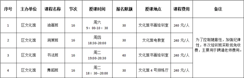 (四)报名未达到核定开课人数的课程或遇不可抗拒因素,经开区文化馆将酌情调整课程项目及时间;