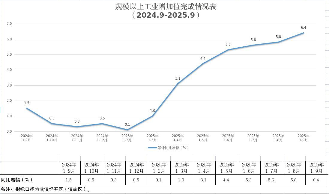 武汉经开区2025年9月规模以上工业增加值