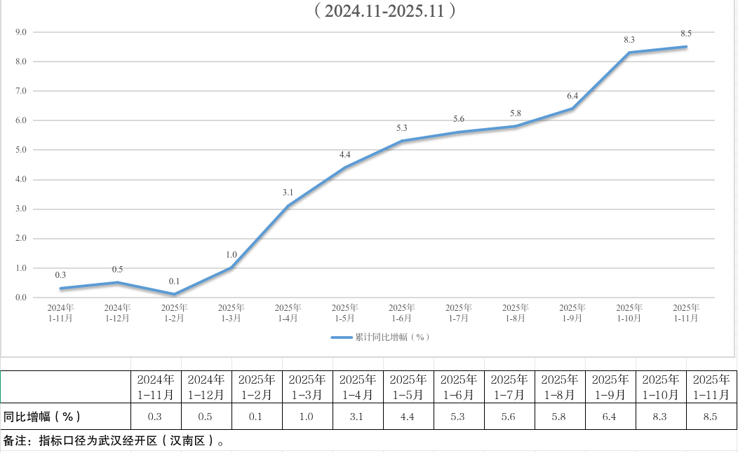 武汉经开区2025年11月规模以上工业增加值