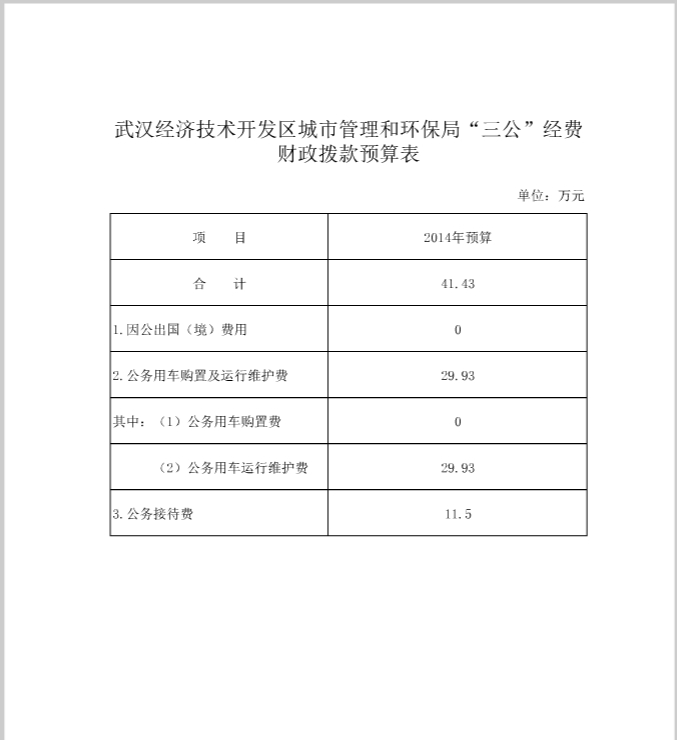 2014年武汉经济技术开发区城市管理和环保局“三公”经费财政拨款预算表