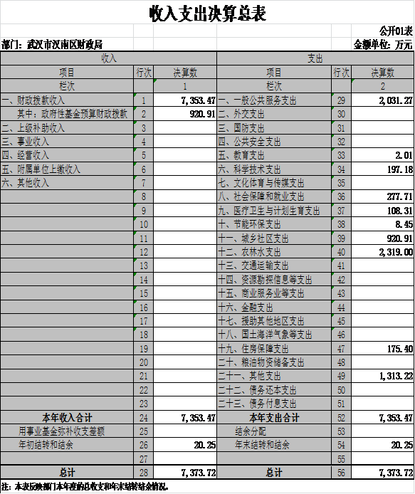 一、收入支出决算总表(表1)