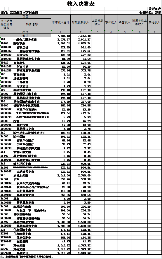 二、收入决算表(表2)