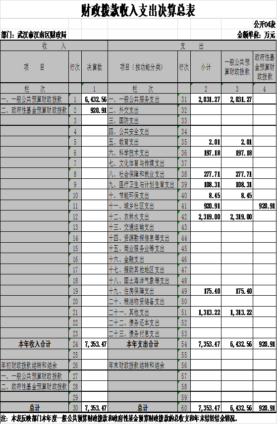 四、财政拨款收入支出决算总表(表4)