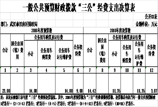(三)“三公”经费:指使用一般公共预算财政拨款安排的因公出国(境)费、公务用车购置及运行维护费和公务接待费。其中,因公出国(境)费用反映单位公务出国(境)的国际旅费、国外城市间交通费、住宿费、伙食费、培训费、公杂费等支出;公务用车购置及运行维护费反映单位公务用车车辆购置支出(含车辆购置税)及租用费、燃料费、维修费、过桥过路费、保险费、安全奖励费用等支出;公务接待费反映单位按规定开支的各类公务接待(含外宾接待)费用。