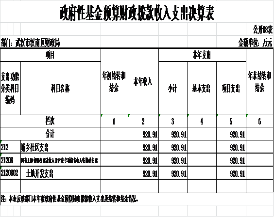 2016年政府基金预算财政拨款上年结转和结余0万元,本年收入920.19万元,本年支出920.91万元,年末结转和结余0万元。具体支出情况为: