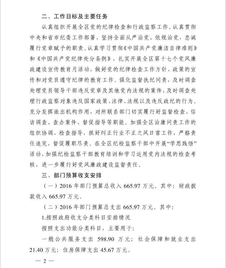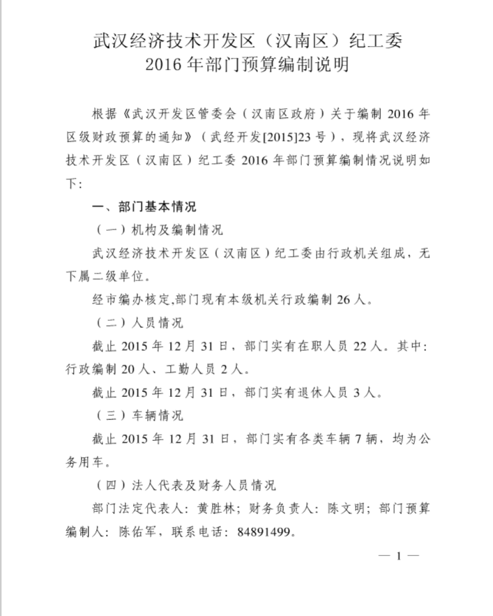 武汉开发区(汉南区)纪工委2016年部门预算编制说明