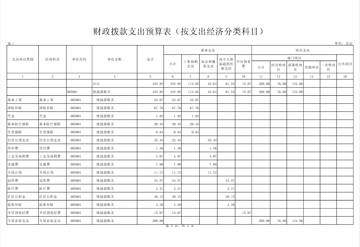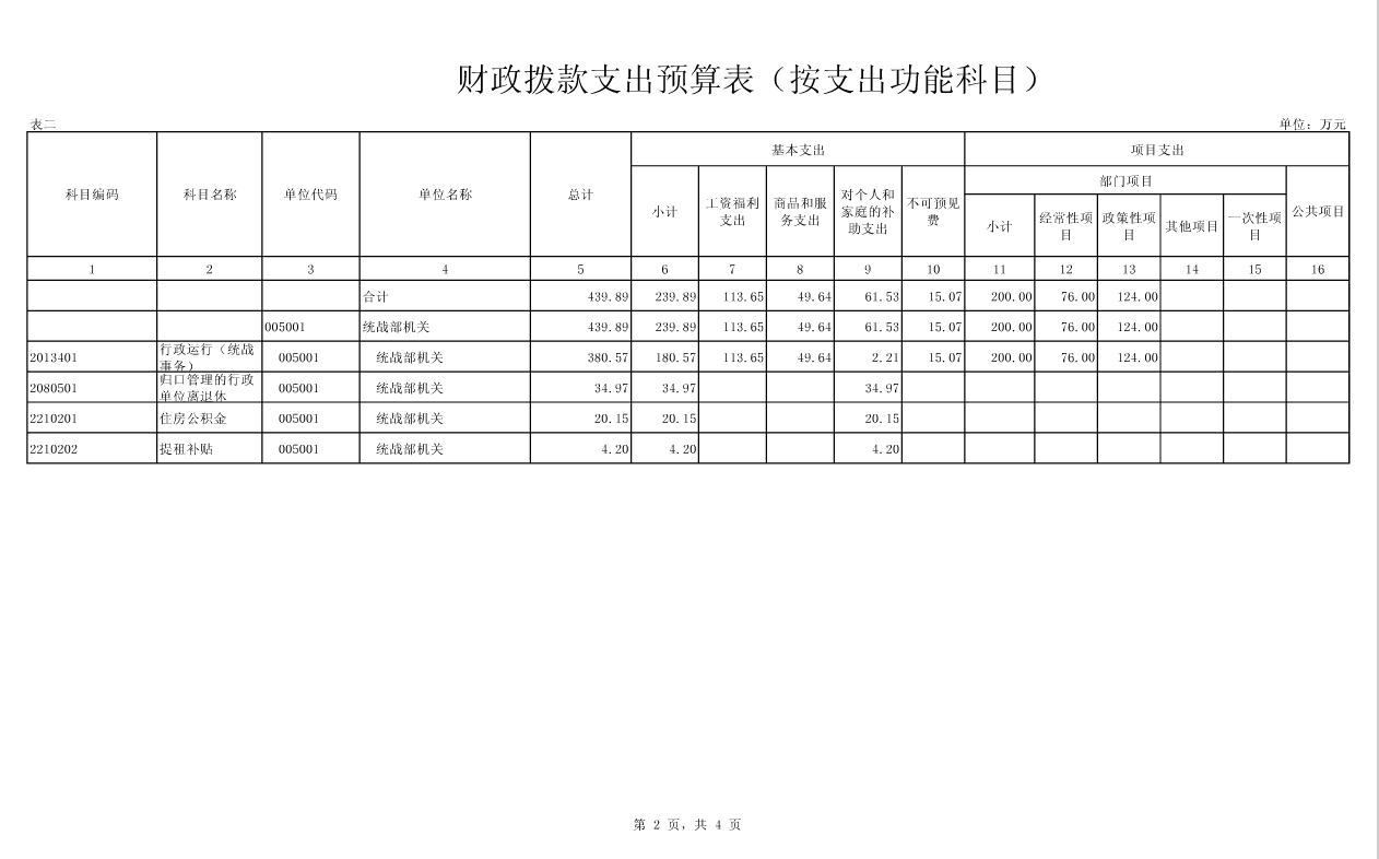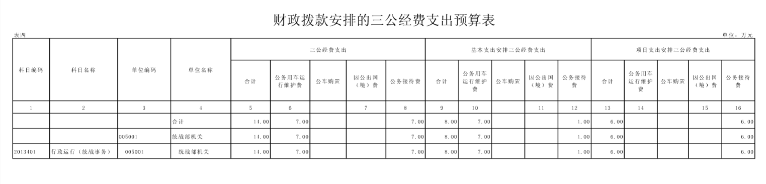 武汉经济技术开发区工委(汉南区委)统战部2016年部门预算表