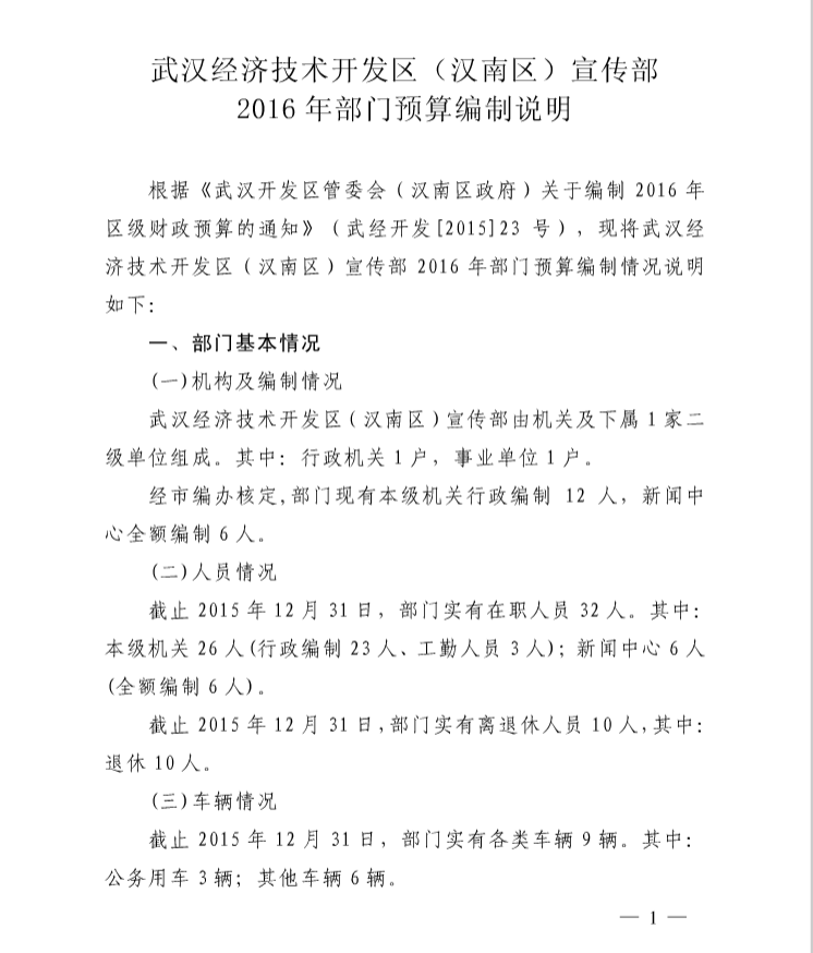 武汉开发区(汉南区)宣传部2016年部门预算编制说明