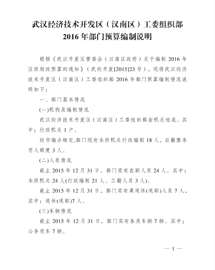 武汉经济技术开发区(汉南区)工委组织部2016年部门预算编制说明
