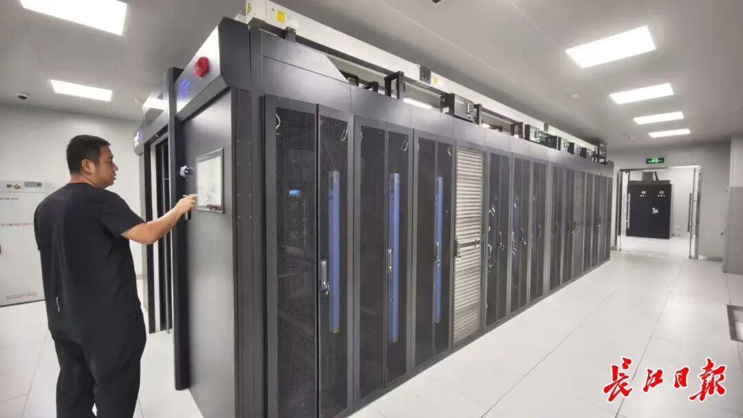 ▲中国电子云武汉可信智算中心,服务器集群正24小时高速运转。记者徐丹 摄