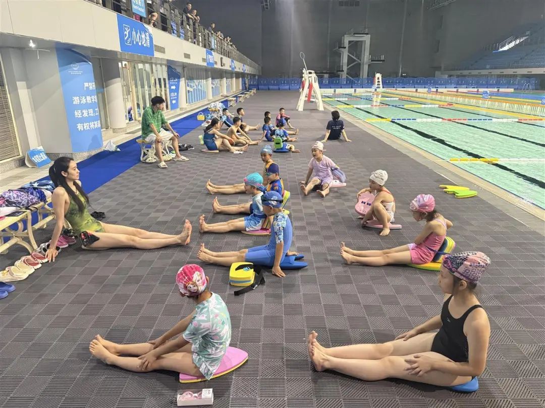 武汉经开区宁康园神龙游泳池是本次选材夏令营培训点之一,近期举办了防溺水实训课,40余名青少年走进神龙游泳池,通过实景教学与实战演练,沉浸式掌握防溺水自救互救技能。